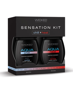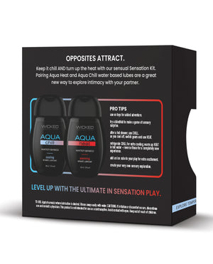 Opposites Attract. Keep it chill AND turn up the heat with our sensual Sensations Kit. Pairing Aqua Heat and Aqua Chill water-based lubes are a great new way to explore intimacy with your partner.