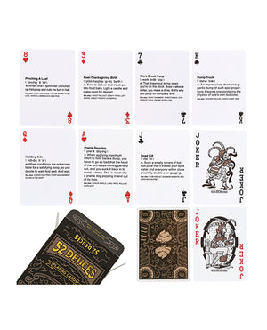 Flush out boring card games with "52 Deuces," a 54-card deck bursting with bathroom humor. Each card reimagines classic suits with a hilarious poop-themed twist that'll have you laughing all night. Crafted from premium linen woven cardstock, these 2.5 x 3.5 inch cards are as durable as they are funny. Packaged in a gold foil box featuring a cheeky poop emoji, this deck is perfect for gag gifts, stocking stuffers, or anyone who enjoys a good laugh. Why play it straight when you can play with deuces?