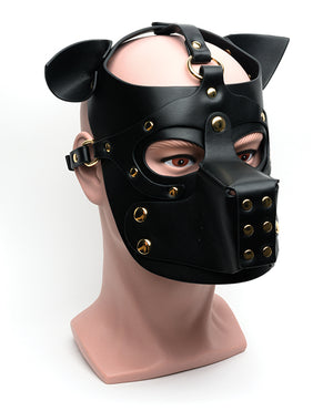 A puppy play hood designed for the fetish world, meticulously crafted from supple PU ( polyurethane) material and featuring premium alloy hardware, is a striking and functional accessory tailored for enthusiasts of the puppy play fetish scene.