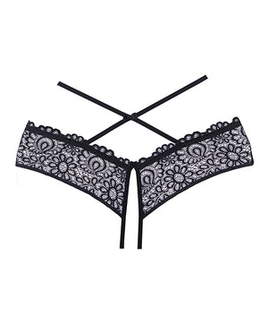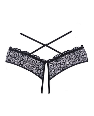 Adore Crayzee Open Panty w/Criss Cross Waist Straps & Lace Black O/S
