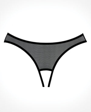 Fulfill his darkest desires in this sexy panty featuring a low cut waist, a sheer mesh front, a bikini style with an eyelash lace back panel, a striking satin bow accent, and an open rear with booty shaping straps. Leave nothing to the imagination. Color: Black One Size. Bust: 34in.-38in. Waist: 26in.-30in. Low Waist: 28.5in.-32.5in. Hip: 36in.-40in.
