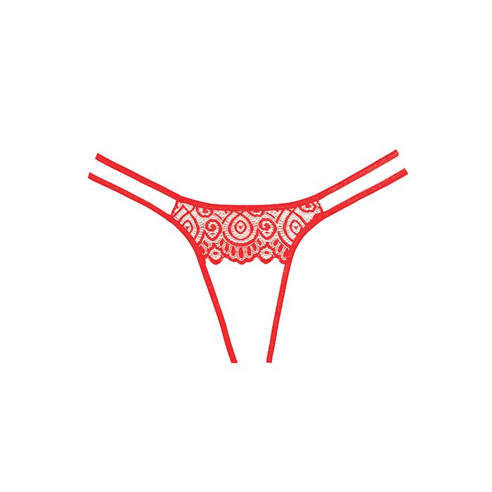 Immerse yourself in sexy sophistication in this flirty panty featuring a swirling sheer lace with an open peek-a-boo crotch panel, double thin hip straps, a lace back panel, and an open rear with booty shaping straps. Color Black One Size. Bust: 34in.-38in. Waist: 26in.-30in. Low Waist: 28.5in.-32.5in. Hip: 36in.-40in.