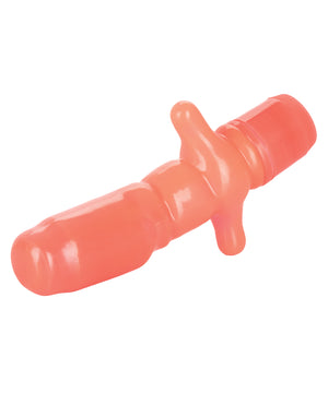 This super soft, jelly coated stimulator measures a discreet 3.25”x 1”/8 cm x 3 cm and boasts intense multi-speed power and superior vibrating action. Made from unscented, phthalate free PVC, the compact anal vibe has a contoured shaft with angled tip, and two flexible ticklers that make it safe for pleasurable penetration play. The easy to use personal massager is powered by one AA battery, and simply requires a twist on the cap to get the party started. Adjust the speed to match your sexual mood, and enjoy an unforgettable exotic experience.