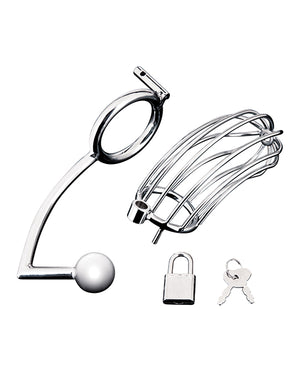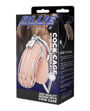 Blue Line Cock Cage w/Anal Stimulator - Silver