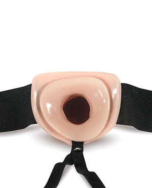 The Dr. Skin 7 Inch Hollow Strap On is a versatile toy that will keep your playtime going as long as you want! The dildo is hollow to fit a biological penis, but can be worn by any gender. It delivers a soft, lifelike feel and skin texture for extra stimulation. The harness' stretchy waistband will accommodate hips up to 40 inches. Made of lab-tested body safe PVC, the dildo in the Dr. Skin 7 Inch Hollow Strap On is non-porous and easy to keep clean.