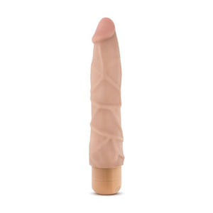 The doctor is in! Blush Novelties Dr. Skin Vibe #1 is an 9 inch realistic vibrator with veins and twist dial base for multi-speed vibration. It's tapered head and thin shaft can be comfortably and easily inserted. Created for the beginner and for the cost conscious, Vibe #1 is made of phthalate free PVC which is comfortably soft yet rigid for vigorous play. Vibe #1 is powered by 2 AA batteries, not included.