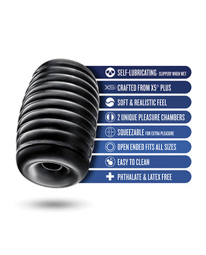The Rize! Grasp is loaded with fun! This versatile pocket stroker is a man-cave essential. With self-lubricating technology, all you need is to add a little bit of water or saliva to your stroker to make it slippery and smooth, then slide right in! Grasp is made with premium X5® Plus, which feels incredibly silky to the touch, providing luxury with every movement. Featuring dual erotic pleasure chambers including a ribbed orb chamber and a nubby rub chamber, you’ll experience the perfect combination of massaging sensations. Grasp naturally warms to your body temperature, adjusting to your touch to heat up your desires for a highly realistic feel. Grasp onto your stroker with textured grip, applying desired pressure to match your preferred intensity while stroking. Get ready to destress and release. This pocket stroker is small, discreet and easy to clean. Make your solo play the best time of day - Let Grasp be the reason you Rize!