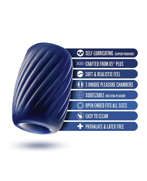 The Rize! Turbine is loaded with fun! This versatile pocket stroker is a man-cave essential. With self-lubricating technology, all you need is to add a little bit of water or saliva to your stroker to make it slippery and smooth, then slide right in! Turbine is made with premium X5® Plus, which feels incredibly silky to the touch, providing luxury with every movement. Featuring 3 deeply erotic pleasure chambers including 2 foreplay chambers and 1 rub-a-dub chamber, you'll experience the perfect combination of massaging sensations. Turbine naturally warms to your body temperature, adjusting to your touch to heat up your desires for a highly realistic feel. The textured exterior is easy to grip and apply desired pressure to match your preferred intensity while stroking. Get ready to destress and release. This pocket stroker is small, discreet and easy to clean. Make your solo play the best time of day -? Let Turbine be the reason you Rize!
