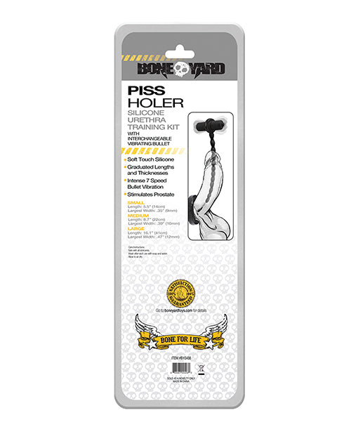Silicone urethra trainer kit with interchangeable 7-speed vibrating bullet. 3 ribbed super flexible dilators with different length and diameter (9, 10 and 12 mm), great for intense urethral and prostate stimulation, for beginners as well as advanced users.