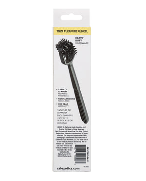 Indulge in endless spine-tingling pleasure with the daring Boundless Trio Pleasure Wheel. The teasing pleasure wheel is made to thrill with three 22-point rotating pinwheels, heavy-duty hardware, and non-tarnishing material.