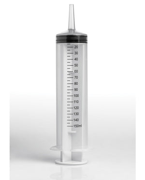 This enormous syringe is the perfect tool for cleaning out. The metric measurements on the tube make it easy to fill with the perfect amount of your desired liquid. The tapered tip is easy and comfortable to insert for a pleasant experience. This enema syringe is compatible with both silicone and water-based lubricants and cleans with mild soap and warm water. From XR Brands. Measurements: 150ml capacity. 8.25 inches in length, 2.25 inches in diameter, 1.3 inch insertable tip. Material: ABS plastic, rubber. Color: White.