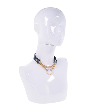 This elegant piece, crafted from animal-printed faux leather, is adorned with subtle gold hardware, making it a stylish accessory for any occasion. The gold ring that hangs from your neck can be used for playful tugs or to attach a leash, adding an extra layer of excitement to your encounters. Wear it as a bold statement or a discreet symbol of your wild side, and let your inner feline shine.
