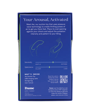 A breath of fresh air?! Aer isn't a vibrator, it's a whole different adventure. Its pressure wave technology creates rhythmic pulses of air that'll give even the most savvy, curious vibe users a unique thrill. Aer mimics the flutter of a tongue and the suction of a mouth—perfect if oral stimulation sends you over the edge. Aer keeps the focus on your orgasm by creating a soft seal around your clitoris. If your arousal needs a kickstart, or if you just prefer a quick and intense peak, Aer gets you there.