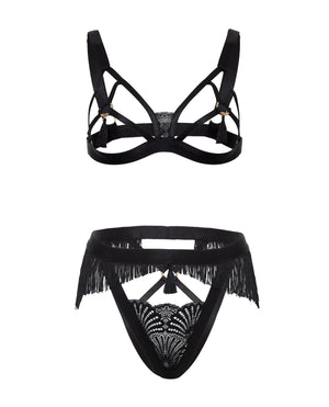 Annika Open Cup 2 pc Set w/Fringe and Tassel Detail - Black
