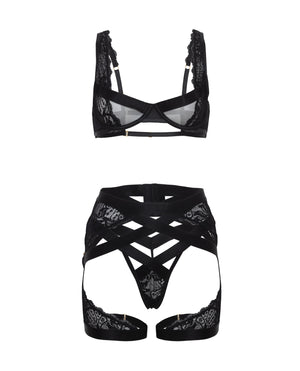 Thalia Mesh & Lace Underwire 3 pc Set - Black