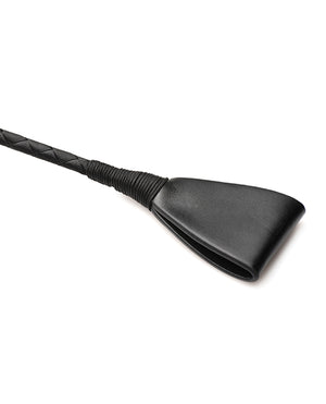 Add a sturdy crop to your collection and always have a wicked tool on hand for spankings and kinky play! This riding crop delivers a sharp and certain bite for when you want to kiss your partner with a touch of delightful pain. Made out of vegan friendly leather, this crop has a textured grip that helps you keep your grip as you play. The firm rod at the center is made of a glass fiber that is firm with enough flex to handle impact. The triangular end is perfect or precise and specific impact play. To clean, spray with a toy cleaner or a mixture of alcohol and water.