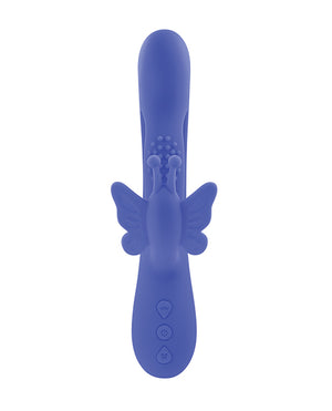 This unique butterfly vibrator has a sexy split in the main shaft that adds an extraordinary pliable girth to your experience! Meanwhile its chunky winged butterfly has two antennae that just won't quit - and each motor operates independently in 10 powerful speeds and patterns. With an easy-to-use 3-button control panel and flexibility to move with your body, this toy is completely water submersible and rechargeable via USB. Five Year Warranty.