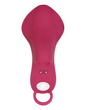 This next-level finger ring vibrator has a wide, thick, flat-surface shaft that's round in circumference, but gently points to tip for precision where you want it. The textured surface tantalizes anywhere you place it, especially your primary erogenous zone, and it's an ergonomic dream with a two-part finger grip - not just a loop, but also fingertip well to guide your navigation. Choose from nine powerful speeds and functions, even underwater as it's completely submersible. Clean with Evolved toy cleaner and a warm water rinse.