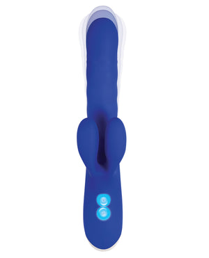 This powerfully intense vibrator is a guaranteed home run! The thrusting action and twirling beads in the tip of the shaft deliver a tantalizing internal sensation with three delicious speeds, and the high scores really add up with the double-motor rabbit ears! Two large, floppy, flexible clitoral stimulators, each with their own 10-speed motor, resonate deep into the clitoral nerves which extend well inside the body. This rumbling ride pushes the boundaries of extreme pleasure, and the level of intensity is up to you! Enjoy in the bath or shower as it’s completely submersible, and recharge when you need to via USB.