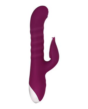 Satisfy multiple pleasure cravings at once! Two powerful motors deliver an extraordinary combination of sensations - thrusting, spinning, internal and external vibration - not to mention the quivering nubs that dance all over the clitoral shaft platform. Choose from 3 thrusting and spinning speeds, and adjust the 10-speed clitoral shaft to find the perfect blend that makes your toe-curling fantasies come true, even under water as it's completely submersible. Clean with Evolved Toy Cleaner and a warm water rinse.