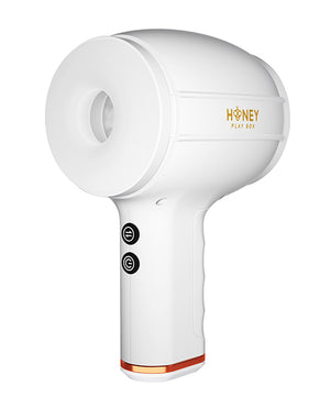This new masturbator has an unconventional design with a user-friendly handle. You can easily touch the buttons to cycle through 4 thrusting patterns and 7 vibrating modes. With caps to either end, it's a discreet companion ready to join you on erotic adventures anywhere and anytime.