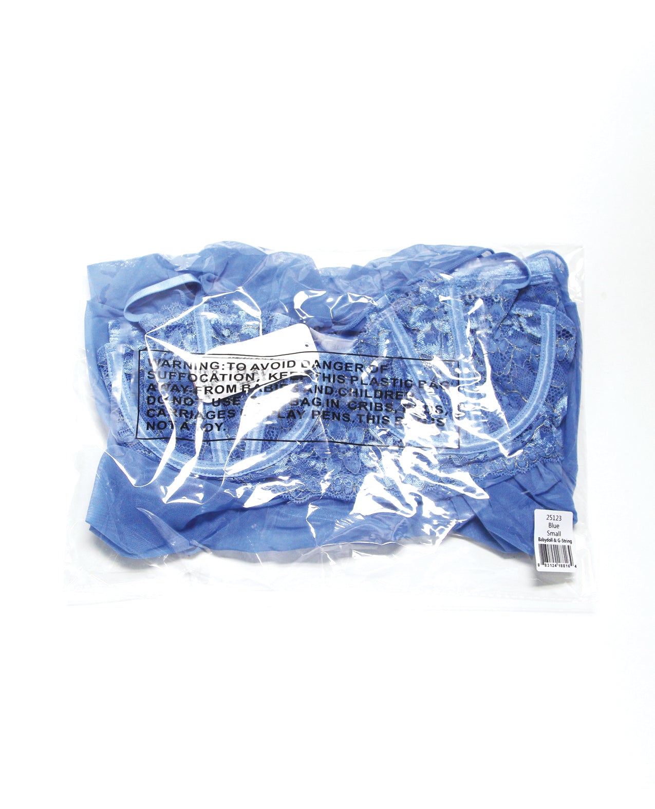 Floral Lace and Mesh Babydoll w/Underwire Cups & High-Waist Thong 2 pc Set - Blue SM