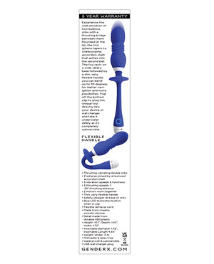 Experience the wild sensation of two bulbous orbs with a thrusting bridge between them! Rounded at the tip, the first sphere tapers to a telescoping accordion shaft that settles into the second ball. The toy rests on a wide safety base followed by a slim, very flexible handle you can bend up to 90 degrees for better navigation and more possibilities. Pop off the bottom cap to plug this unique toy directly into your device or wall charger and take it underwater safely as it's completely submersible.
