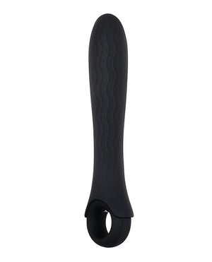 A super strong vibe for power lovers! Slip a digit through the loop handle for a steady grip - because you're going to need it! Amp up the motor through 12 zippy speeds and pulsing functions to feel the force wherever you desire it most. The wavy textured shaft and creamy silicone body is flexible to move with your body whether you're exploring inside or out, even under water as it's completely submersible. Recharge anytime via USB to keep top speeds robust and ready to please.