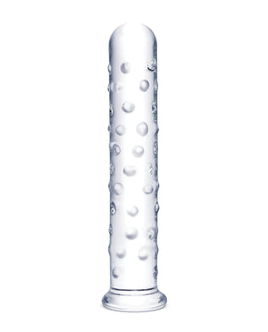Enjoy deep penetration and larger than life orgasms from this 10-inch lustrous glass dildo featuring ridges all along the shaft that provide massage thoroughly, hitting all of the areas that desire it the most. The smooth tapered tip makes this extra-large dildo easy to insert as its elongated size provides optimal reach.