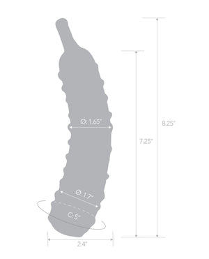 Experience the ultimate in pleasure with the Caressing Cucumber 8.25" Glass Dildo! This elegantly designed handblown glass dildo features a realistic cucumber shape with delightful textured bumps, perfect for delivering satisfying sensations. With an insertable length of 7.25”, it caters to users of all experience levels. Easy to clean and compatible with all lubricants, this delightful dildo is a must-have for your collection. Get ready to enjoy a refreshing adventure!