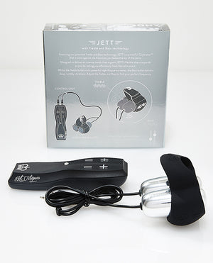 JETT is a powerful Guybrator that is worn against the frenulum, just below the tip of the penis. It delivers an intense, hands-free orgasm with a flexible sleeve that expands, enabling the user to effortlessly go from flaccid to erect. JETT is powered by two custom 'bullet' vibrators each containing a different sized motor, which deliver contrasting vibration frequencies. The Treble Bullet emits intense high- frequency waves while the Bass Bullet delivers deep, rumbly low-frequency stimulation. The user can deploy each bullet separately or in combination.>