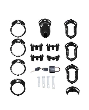 The Vice Mini Version 2 (or V2) has a slight modification from the original design. We have lowered the urination hole to allow for easier bathroom usage, as well as added a small drain hole at the bottom of the cage head for any urine that happens to get caught inside of the cage for a cleaner and more hygienic experience. This small chastity cage uses all of the same components of The Vice™ standard. You will get to take advantage of the same revolutionary anti-pullout technology, in a smaller package; meaning your locked sissy isn’t going anywhere! A common problem with a sissy chastity cage is having the member “turtle” into the body making an easy escape. The Vice™ Mini, with the right anti-pullout, will prevent your locked sissy clitty from going anywhere! The Vice™ Mini also includes a handful of different sizes with every device, therefore giving you personalized customization for maximum comfort and security. It’s time to enjoy a sissy chastity cage that offers the true inescapable chastity experience! ALL PARTS OF THE VICE™ ARE COMPATIBLE WITH OTHER VICE’S (i.e. Standard/Plus). Each order includes: Mini Cage (1) Rings (4) Anti-Pullout (3) Anti-Pullout Cap (1) Spacers (4) Locking Pins (4) Brass Pad Lock (1) Velvet Carrying Case (1). Product Dimensions: Cage: Length – 40 mm (1.5 inches) Width – 36 mm (1.4 inches) Rings: Small - 40 mm Medium - 44 mm Large - 46.5 mm X-Large - 48.5 mm Anti-Pullout Gap: Small - 17 mm Medium - 19 mm Large - 21 mm Pullout Cap Wear the device without any anti-pullout Locking Pin/Spacers (distance of ring from cage): Small - 6.5 mm Medium - 10 mm Large - 13 mm X-Large - 15 mm Materials: Body safe Polycarbonate. One year warranty.<