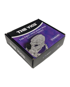 The Vice Chastity Device is the first and only inescapable chastity device in the world not requiring a PA (Prince Albert) piercing. The Vice is commonly compared with the Holy Trainer; however, The Vice rivals even that of the Holy Trainer male chastity belt in both comfort and security! Being the first device we have created, The Vice is our flagship device. It offers a level of security not seen before in other chastity devices. The textured design on the inner tabs of the anti-pullouts are the key to its claim of being inescapable. The longer the device is worn, the more secure it becomes. After 2 days of constant wear, it becomes inescapable! The Vice's anti-pullout system differs from anti-pullouts sold for other devices. This anti-pullout was engineered to work with the device from the start. This differs from aftermarket pieces sold for other chastity devices which can be unbearably uncomfortable. The Vice chastity often goes unnoticed when worn, even while wearing the anti-pullout! It can also be worn without the anti-pullout system which is great for beginners! But when you are ready for the inescapable chastity experience, you will always have the anti-pullouts available to use anytime! The Vice Chastity also includes a handful of different sizes with every device, therefore giving you personalized customization for maximum comfort and security. It's time to enjoy a male chastity belt that offers the true inescapable chastity experience! Cage Length - 70 mm (2.75 inches) Width - 36-> 34 mm (1.4->1.3 inches - Funnel Shape Cage Cage Length - 70 mm (2.75 inches) Width - 36-> 34 mm (1.4->1.3 inches - Funnel Shape Design) Rings: Small - 40 mm,Medium - 44 mm,Large - 46.5 mm,X-Large - 48.5 mm Anti-Pullout Gap- Small - 17 mm,Medium - 19 mm,Large - 21 mm Pullout Cap - Wear the device without any anti-pullout Locking Pin/Spacers (distance of ring from cage) - Small - 6.5 mm,Medium - 10 mm,Large - 13 mm,X-Large - 15 mm Materials: Body safe Polycarbonate One Year Warranty