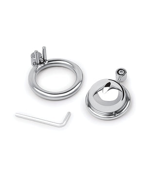 This stainless steel inverted micro chastity cage from LockMaster is the embodiment of maximum restraint in a compact, sleek design. Made of body-safe stainless steel, it guarantees durability without sacrificing comfort.