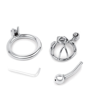 Lockmaster Stainless Steel Inverted Micro Chastity Cage w/Urethral Straw - Silver