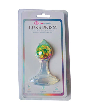 Luxe Prism Small Plug - Rainbow. Platinum silicone with Handcrafted Blown Glass, Multifaceted Brilliance. Unique Like You.