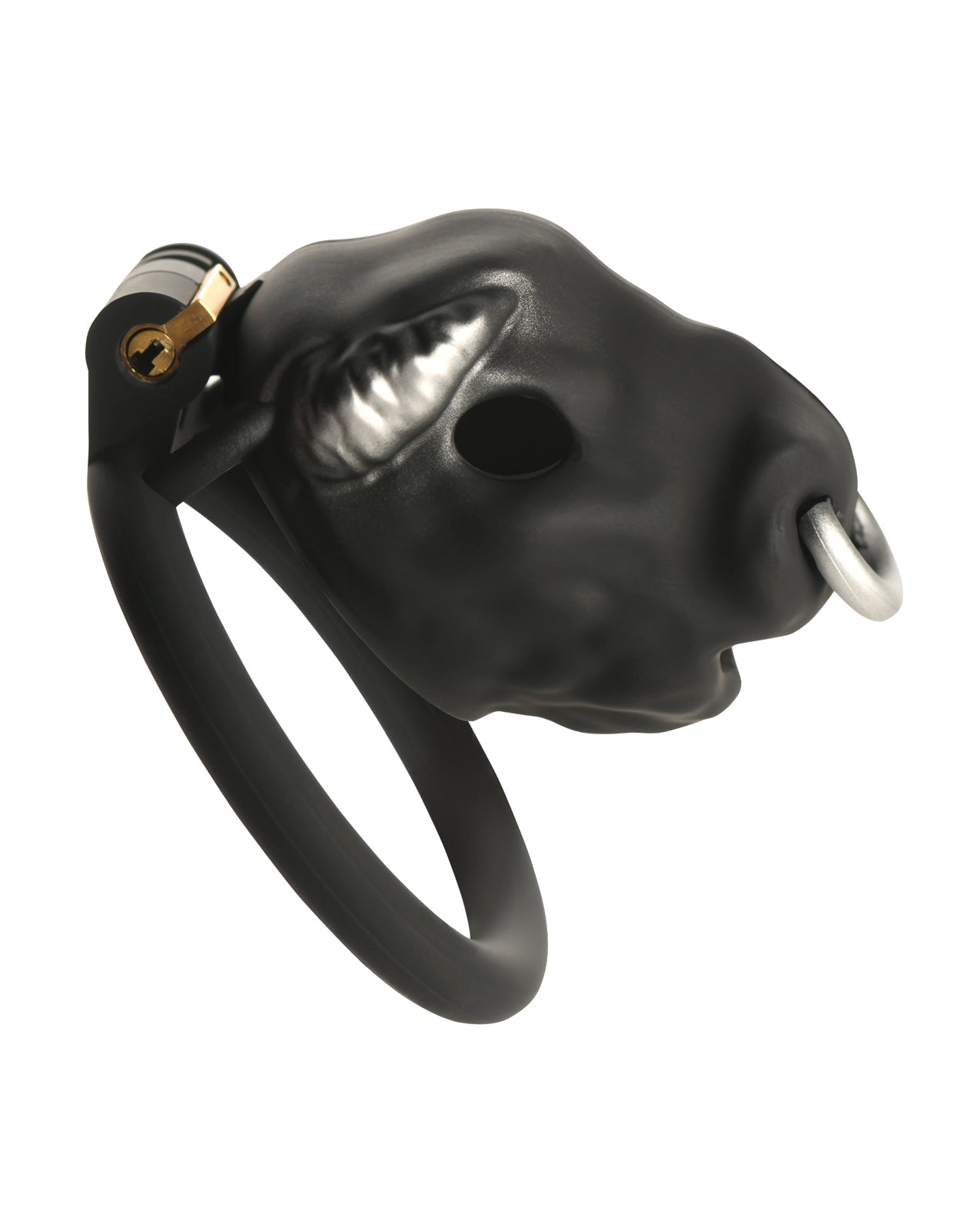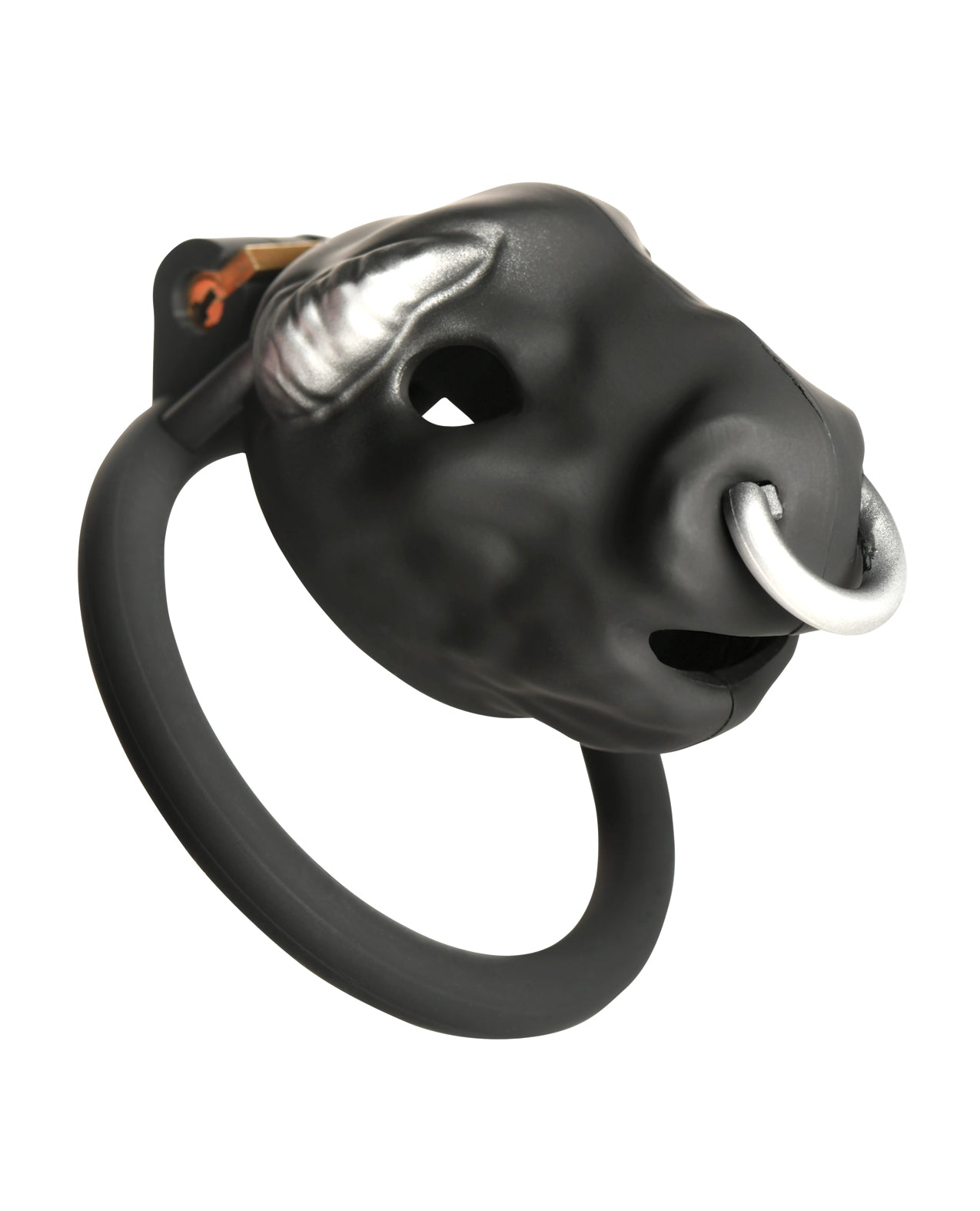 Dominate the moment, and your eager rod, with the Bull Chastity Cage. This unique chastity device features a bull head that caps the tip of the shaft, securing it in place.