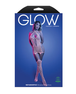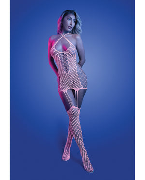 Metamorphic Glow-in-the-Dark Bodystocking Dress; Glows Pink - White O/S
