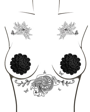 Neva Nude Burlesque Nightfall Roses Reusable Silicone Pasties - Black O/S