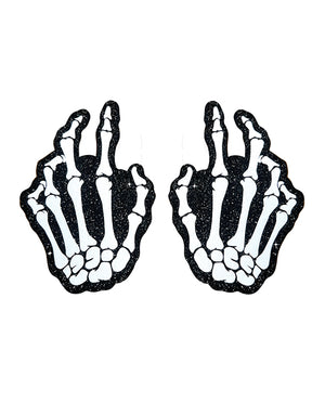 Neva Nude Holographic Skeleton Hands Pasties - White/Black O/S
