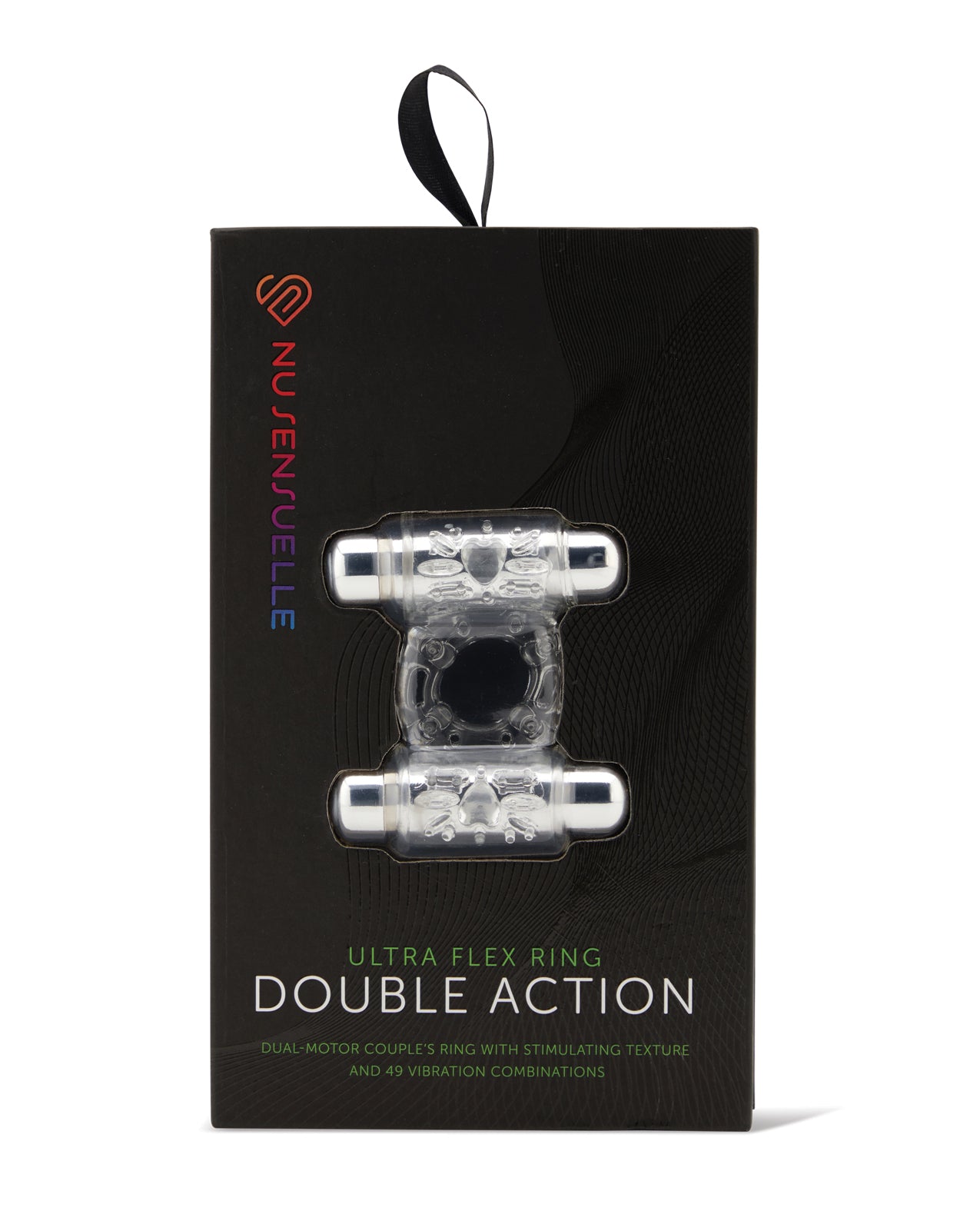 A bullet so nice, we included it twice! Our Double-Action Ring has not one, but TWO of our mind-bendingly powerful bullet vibes, each packing a whopping 7-functions that command their specially designed, center-mounted motors to drive you wild with unique patterns. The ultra-soft, ultra-stretchy ring is made of high-quality SEBS material and fits snugly - but comfortably. Simply position it to hit you and your partner’s most sensitive spots and simply enjoy the dual stimulation. Oh, and a little helpful hint – since each bullet can be controlled independently, you can select different patterns – a whopping 49 separate combinations – to compliment any movement or rhythm. The bullets are both coated in medical grade silicone, are 100% waterproof, and USB rechargeable for convenient on-demand power. Trust us – introduce this ring to your relationship and redefine the phrase “double date!” Two Year Warranty.