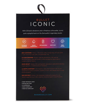 Merriam-Webster defines “iconic” as being widely known and acknowledged, especially for distinctive excellence. Which is just a fancy, roundabout way of saying “Nu Sensuelle’s latest power bullet.” With 20 bold vibrations and a flirtatious silhouette, Iconic puts a playful twist on Nu Sensuelle’s legendary Point bullet. We took our best-selling product, reimagined its design, and kicked up the power with our 60SX motor. Simply put, it’s the most powerful 10 speeds and 10 modes you’ll likely ever feel. Two Year Warranty.