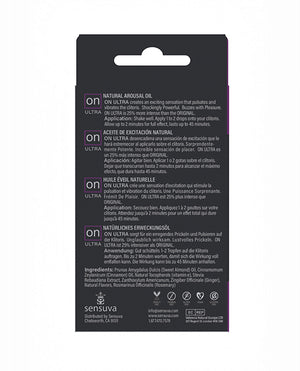 On Arousal is a unique and all natural female arousal oil for any woman who wants to increase satisfaction. On Arousal creates warm and vibrating sensation unlike anything else. Take yourself to an entirely new level of sexual pleasure and orgasm. On arousal Ultra is more intense than the original and perfect for advanced users.
