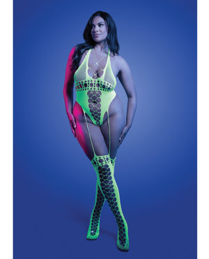 Paradigm UV Reactive Halter Teddy Bodystocking - Neon Green QN