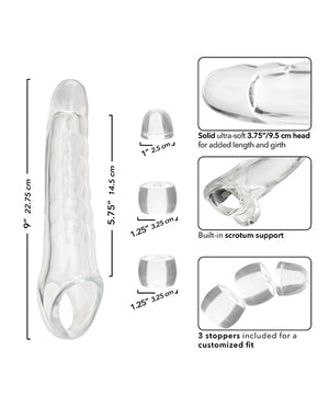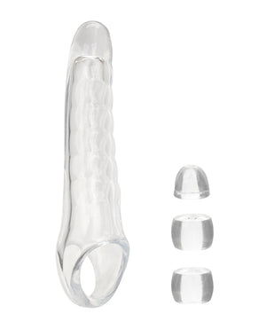 The Performance Maxx Clear Extension Kit is a revolutionary tool designed to enhance and intensify your intimate encounters. Featuring a solid ultra-soft head, measuring 3.75" / 9.5 cm, this extension provides both additional length and girth, ensuring a deeply satisfying experience for you and your partner.