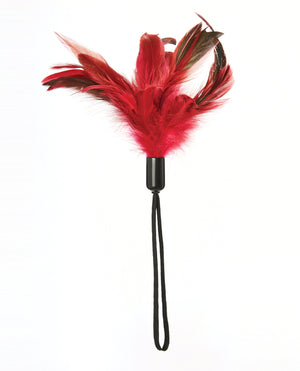 This miniature tickler features long rooster feathers that will explore every inch of intimacy between you and your lover: neck, nipples, thighs, feet, and everything in between. There’s nothing quite like teasing gasps and moans out of the object of your affection, taking them to the very edge of what they thought was possible. Available in three colors, this soft and sensual tool can be used to accessorize your favorite bedroom outfits, from lingerie to roleplay costumes. Just loop the cord around your wrist to keep instant excitement on hand.