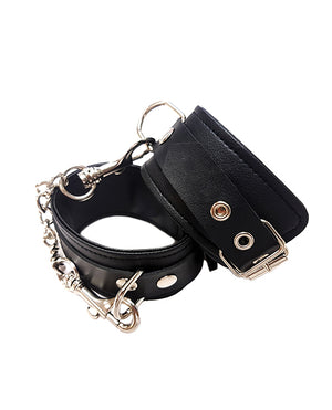 Rouge Fetish Play Vegan Leather Wrist Cuffs - Black