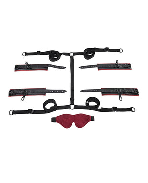 The original (yes, we invented it) Under the Bed Restraint System just got a sultry and seductive new look! Set up in minutes, the alluring deep reds create a lust filled setting made for the naughtiest play. Four luxurious adjustable cuffs in soft and supple faux leather with restraint straps secure to one center connector strap fitting securely under your mattress.