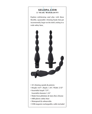 Explore exhilarating anal play with these flexible, squeezable vibrating beads that get incrementally larger on the shaft, ending in a wide safety base. Five Year Warranty.