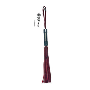 Crimson velveteen tails cascade delicately onto your lovers tepid flesh, gradually bringing their senses to the surface. Lulled yet titillated, their breath bated and eyes obscured beneath a silken blindfold, you feel their nervous anticipation silently begging for more. A moment of silence ensues, followed by a satisfying swish as falls fly fiendishly onto flushed flesh. An irresistible moan of surprise escapes their lips and a full body twitch lets you know they're ready for another lash. The sturdy handle and wrist loop give you a dependable grip for intense encounters.